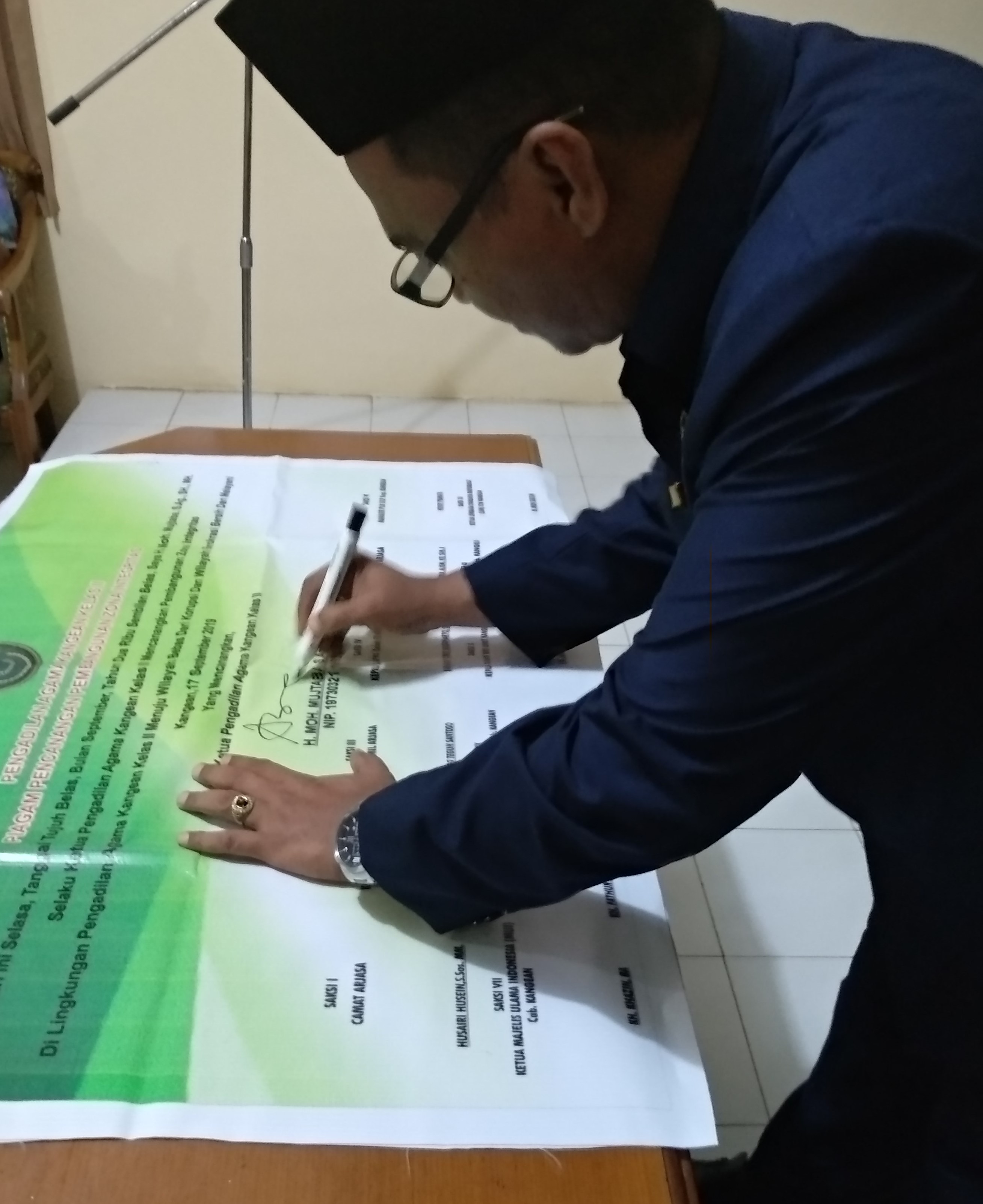 Bertempat di kantor Pengadilan Agama Kangean, Kamis tanggal 19 September 2019 Ketua PA Kangean H. Moh. Mujtaba, S.Ag., S.H, M.H, resmi mencanangkan pembangunan Zona Integritas menuju Wilayah Bebas Korupsi / Wilayah Birokrasi Bersih dan Melayani. Penandatanganan Pencanangan disaksikan oleh Camat Arjasa dan unsur Forkopimka Kecamatan Arjasa meliputi Koramil, Polsek, Lembaga Pemasyarakatan dan KUA.
