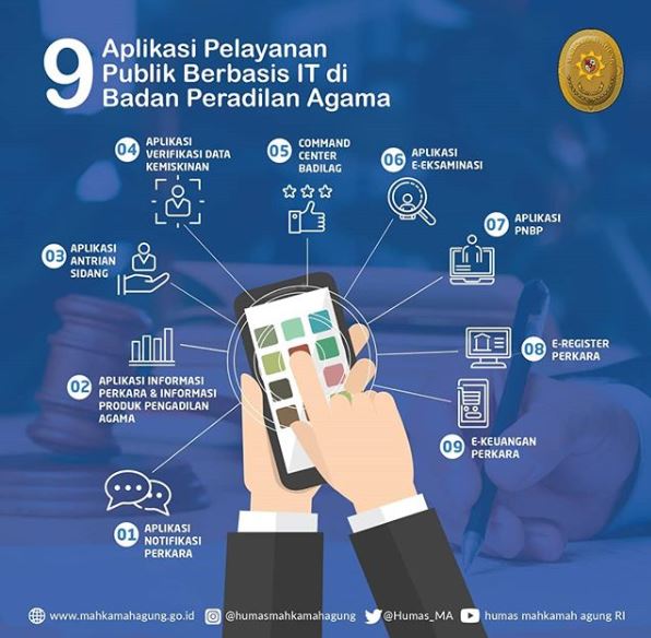 Rabu 18 September 2019, Ditjen Badan Peradilan Agama Mahkamah Agung (Badilag MA) RI meluncurkan 9 aplikasi pelayanan publik berbasis teknologi informasi. Inovasi 9 aplikasi ini untuk mendukung implementasi system e-Litigasi di MA yang telah diluncurkan pada 19 September 2019 oleh Ketua MA, Prof.Dr. M. Hatta Ali, S.H, M.H